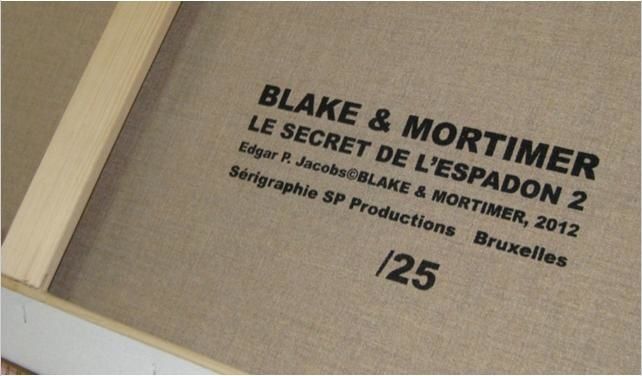 La société belge SP Productions, une entreprise familiale dynamique créée il y a 30 ans et spécialisée dans l'impression sérigraphique de 1ère qualité, a sorti il y a quelques semaines une série limitée de 25 exemplaires de toiles Blake et Mortimer reprenant une fameuse case du Secret de l'Espadon au format 115 x 84 cm. Il s'agit d'une impression en sérigraphie 12 couleurs et au prix de 500 € TTC.